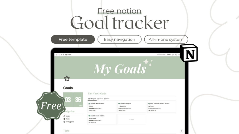 Keep track of all the goals you want to reach with this aesthetic, green themed notion template: divide them into smaller steps to keep the focus on your objectives and to make them easier to achieve.